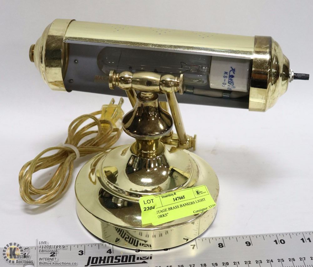VINTAGE BRASS BANKERS LIGHT "WORKS"