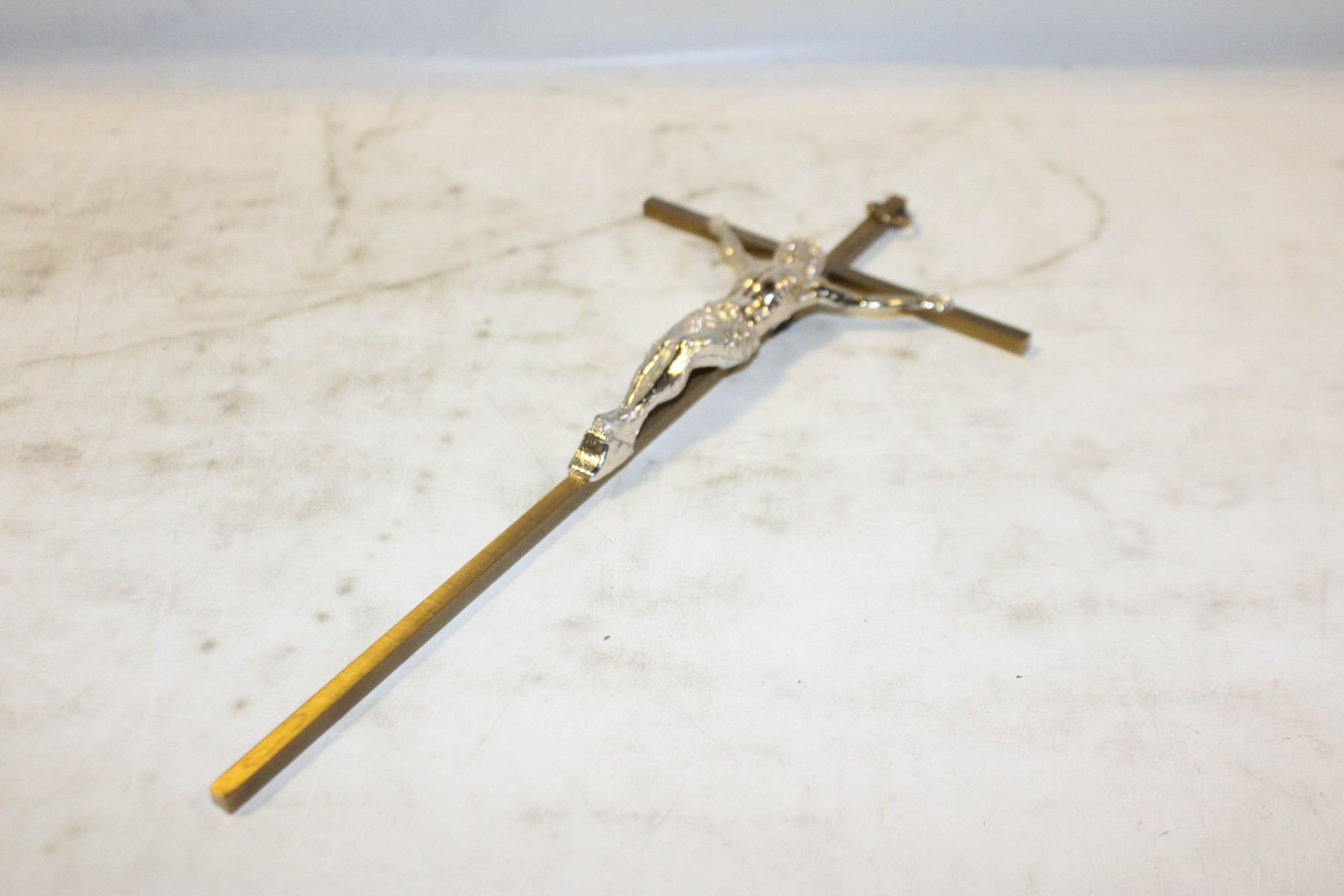 VINTAGE BRASS CRUCIFIX WITH "INIR" INSCRIPTION AT THE TOP, 10", RELIGIOUS