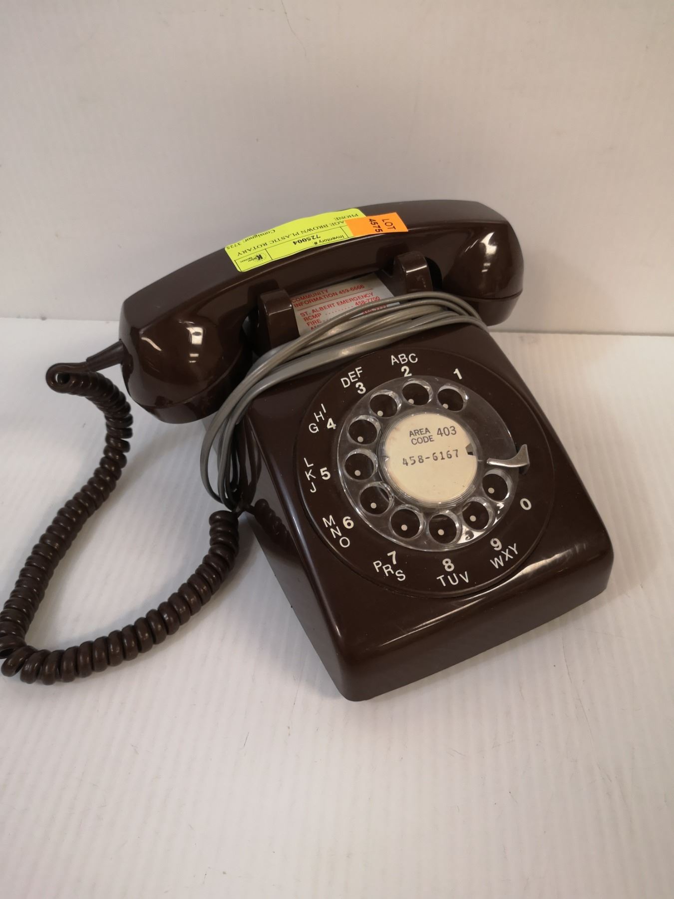 VINTAGE BROWN PLASTIC ROTARY PHONE