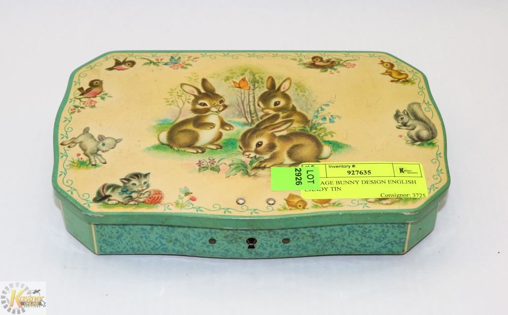 VINTAGE BUNNY DESIGN ENGLISH CANDY TIN