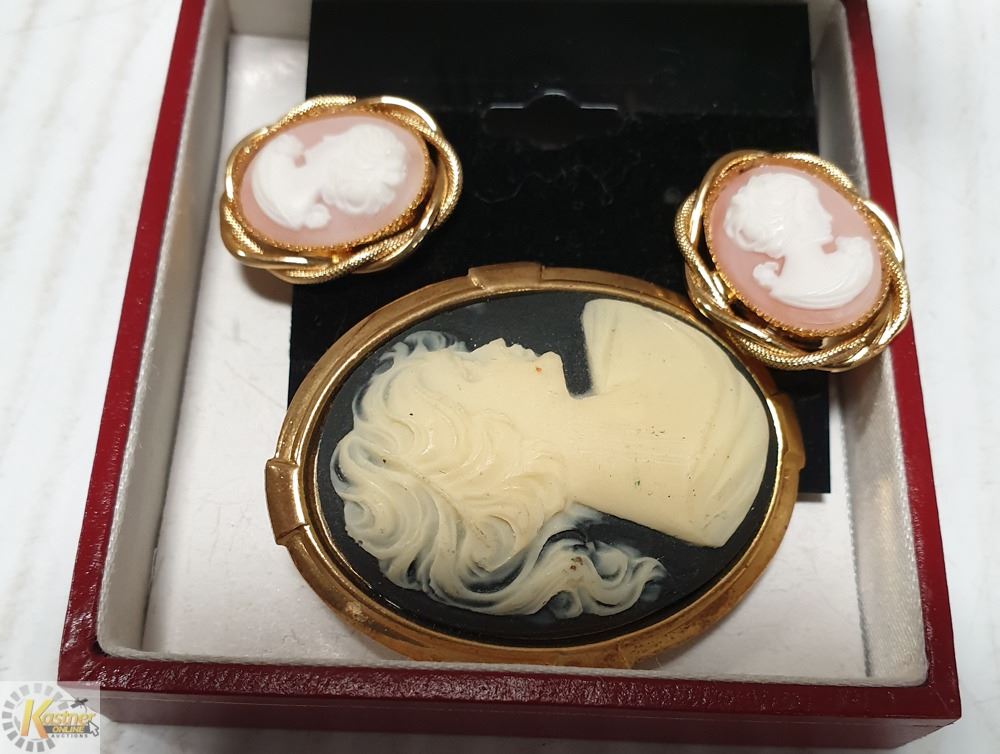 VINTAGE CAMEO EARRINGS & CAMEO SCARF CLIP