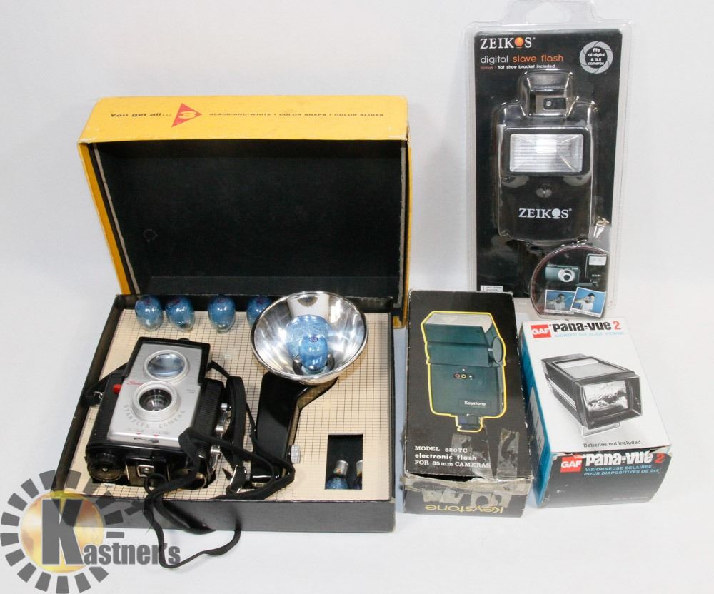 #25L IN ORIGINAL BOX, ZEIKOS DIGITAL SALVE FLASH, GAF, KEYSTONE & MORE. COLLECTIBLES