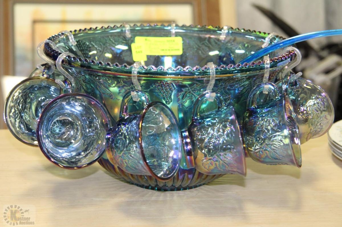 VINTAGE CARNIVAL GLASS PUNCH BOWL SET
