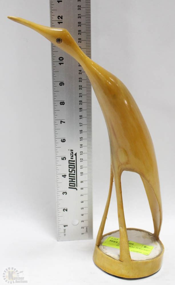 VINTAGE CARVED BULL HORN BIRD SCULPTURE (13"H)