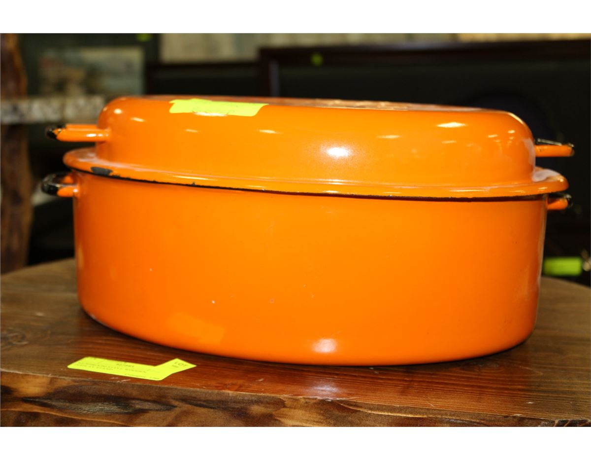 VINTAGE CAST ENAMEL ORANGE ROASTER