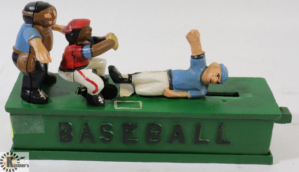 BANK. PLACE A COIN ON HOME PLATE AND PRESS THE SIDE LEVER TO BANK COIN. COLLECTIBLES.