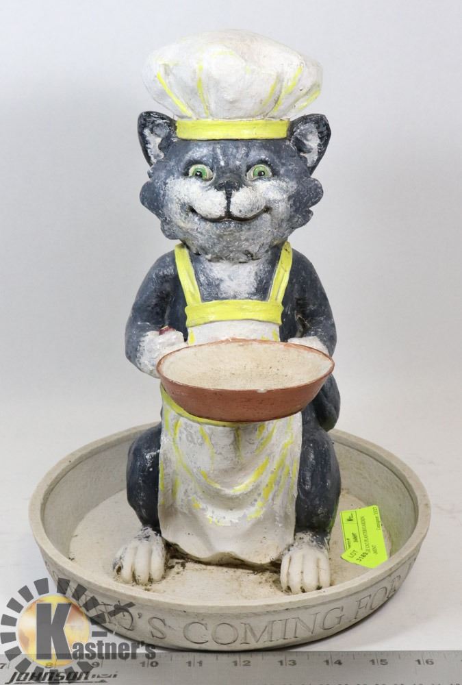 16 INCHES TALL, A CAT HOLDING A PLATE 9 (CAN HOLD A CANDLE OR LANTERN) - HOME