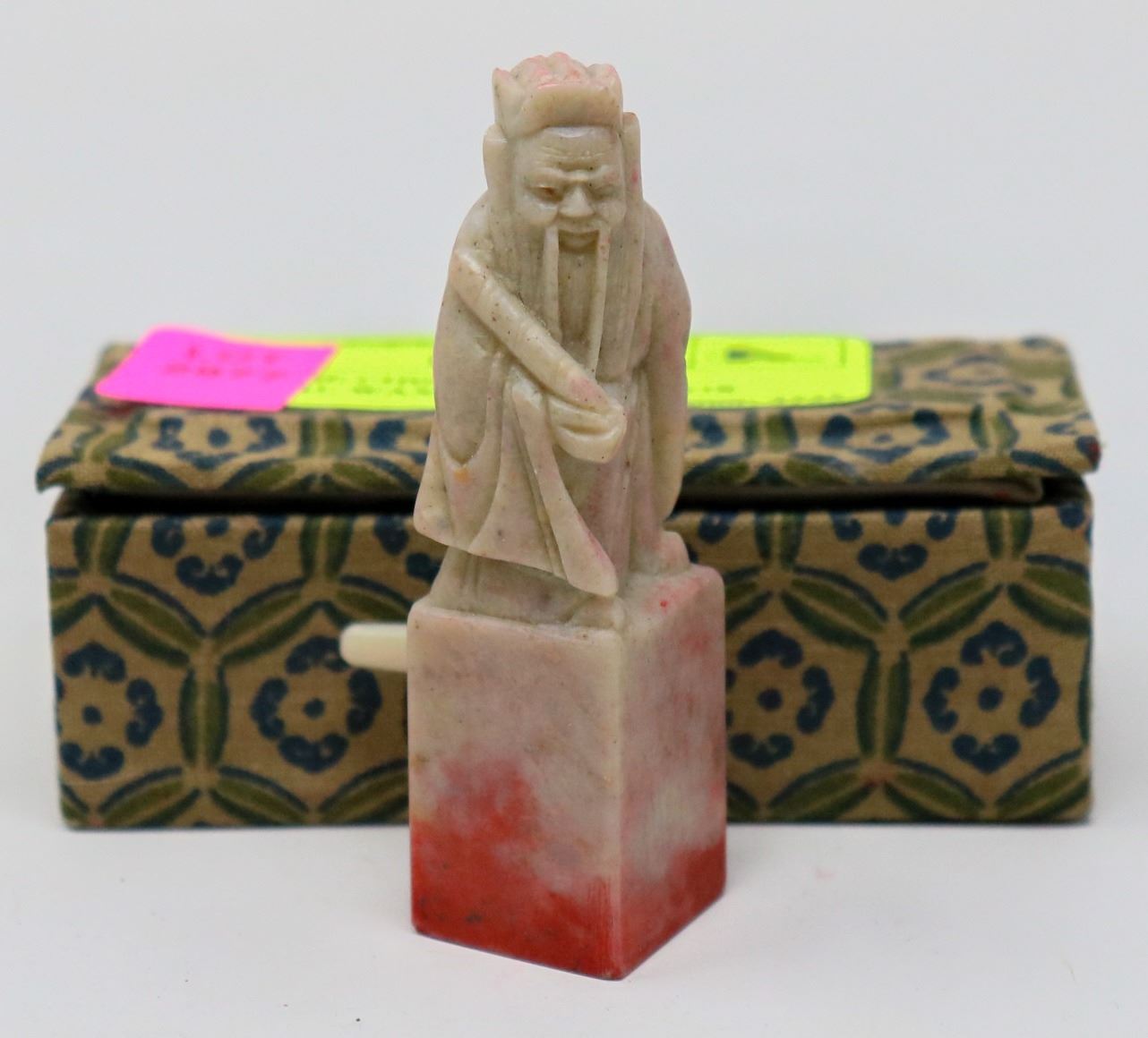 VINTAGE CHINESE CARVED FIGURAL WAX SEAL WITH BOX