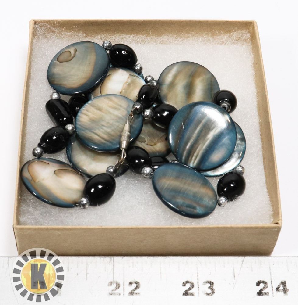 SKY BLUE BEADS VARY IN COLOR & APPROX. 20" LONG***ITEM(S) LOCATED IN LETHBRIDGE ALBERTA