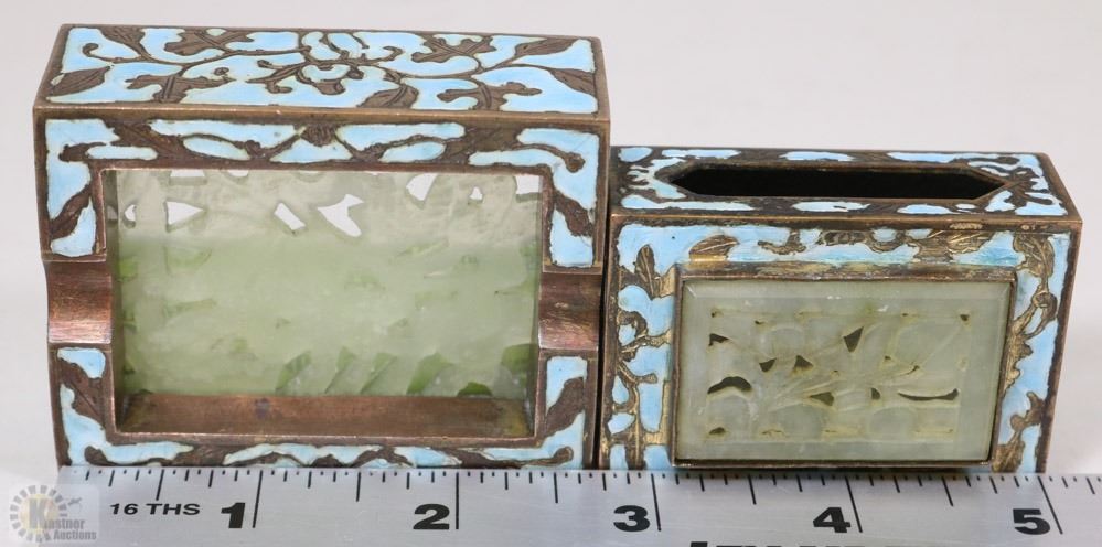NESTING MATCHBOX HOLDER & ASHTRAY. ASIAN FLORAL PATTERN.