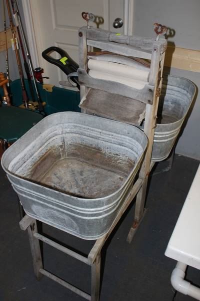 VINTAGE COLLAPSIBLE WASH STAND W 2 TUBS