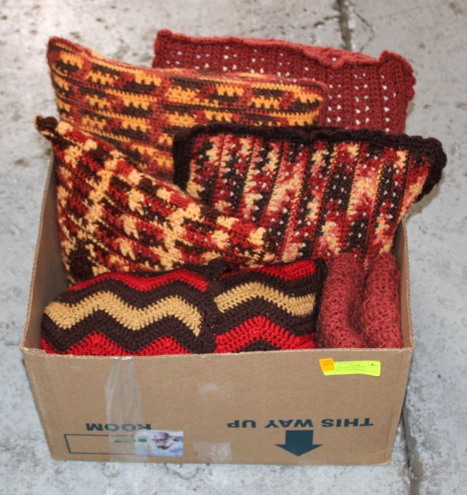 VINTAGE CROCHET/KNIT BLANKETS/PILLOWS LOT