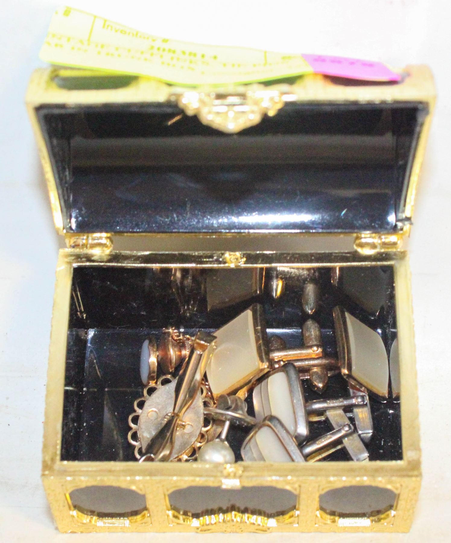 VINTAGE CUFFLINKS, TIE PINS, TIE BAR IN TRUNK BOX