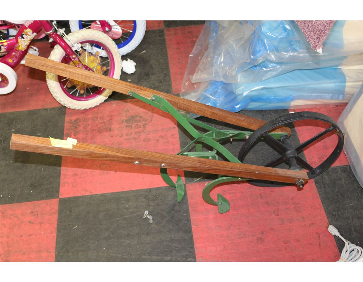VINTAGE CULTIVATOR TURNED GARDEN ART