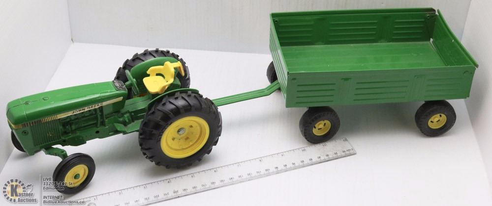 VINTAGE DIE CAST JOHN DEERE TRACTOR & TRAILER