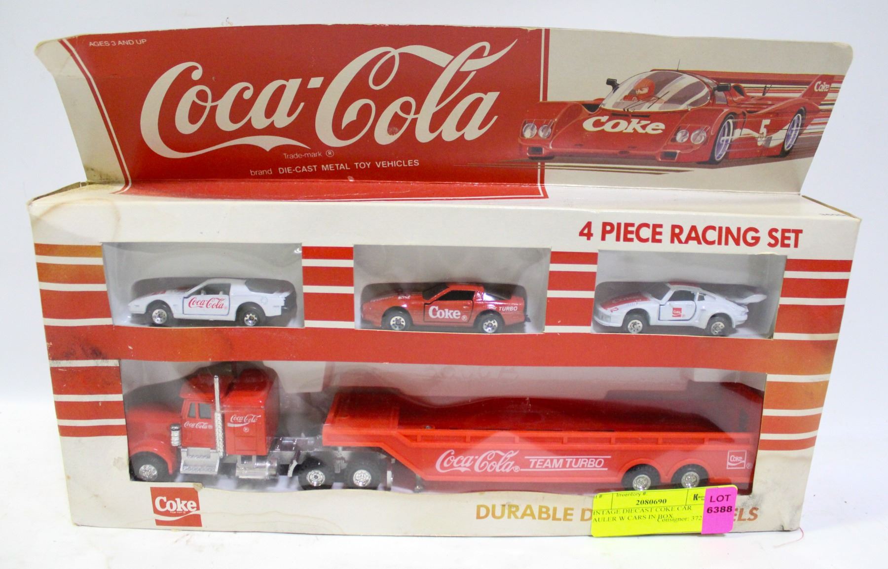 VINTAGE DIECAST COKE CAR HAULER W CARS IN BOX
