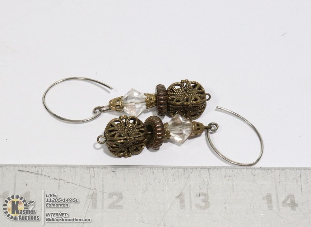 DROP EARRINGS WITH FILIGREE GOLD TONE