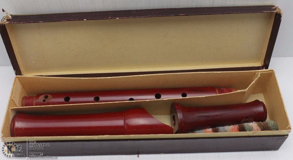 TREBLE F. IN ORIGINAL BOX WITH PIPE CLEANER AND DOLMETSCH RECORDER INSTRUCTIONS.