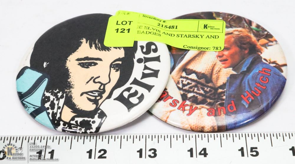 VINTAGE ELVIS AND STARSKY AND HUTCH BUTTONS