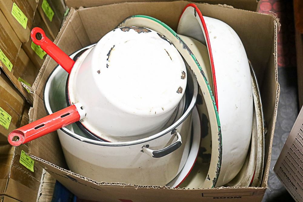 VINTAGE ENAMELWARE- ASSORTED LOT OF 11 PIECES