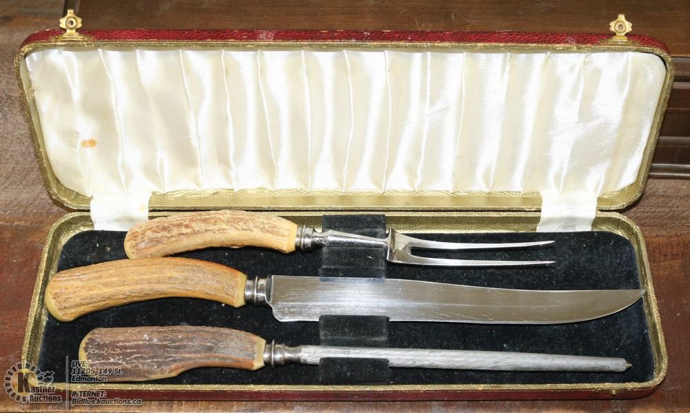 VINTAGE ESTATE BONE HANDLED CARVING SET
