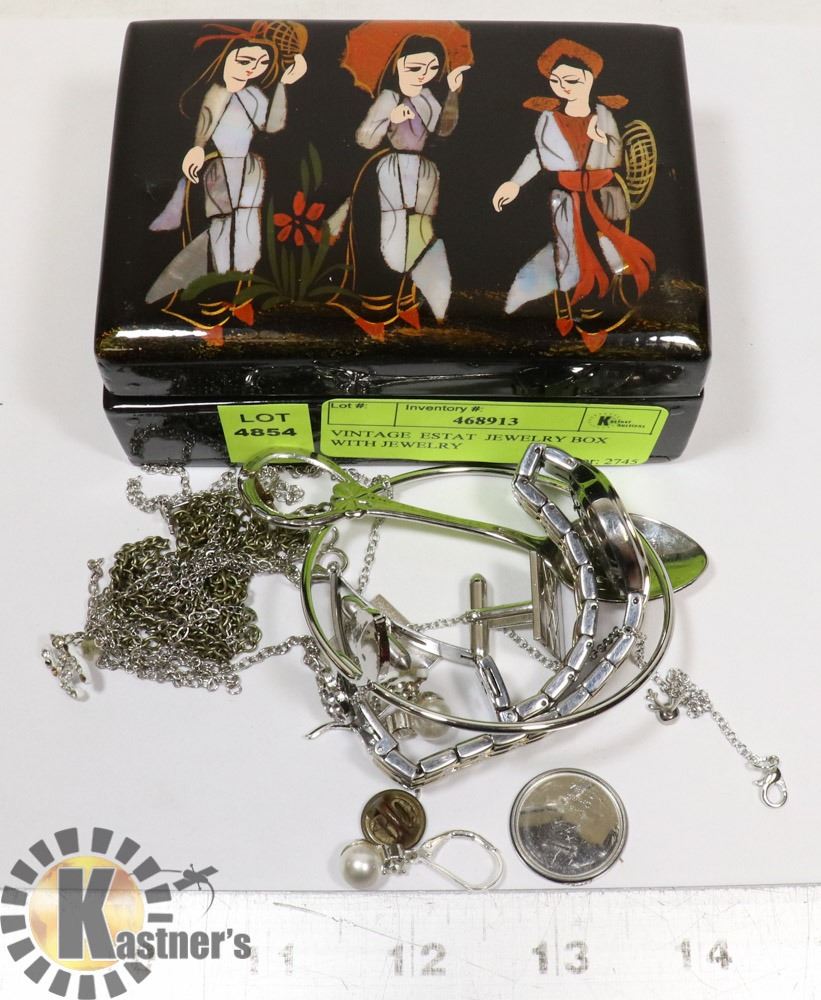 VINTAGE ESTATE JEWELRY BOX WITH JEWELRY