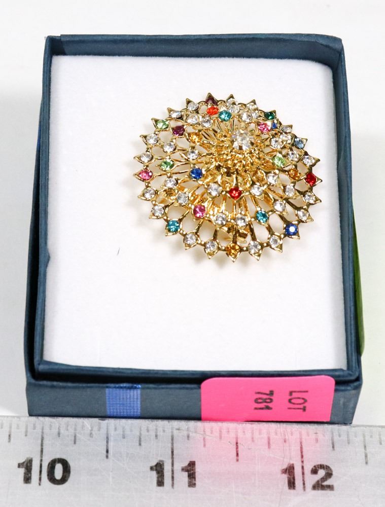 VINTAGE ESTATE MULTI COLOUR CRYSTAL & STONE BROOCH