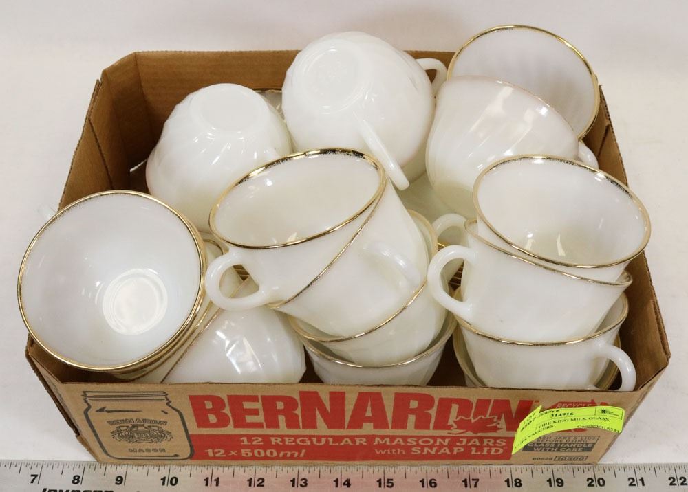WHOLE LOT 18 SAUCERS AND 17 CUPS FIRE KING WARE MILK GLASS STYLE APPROX 1960'S ERA