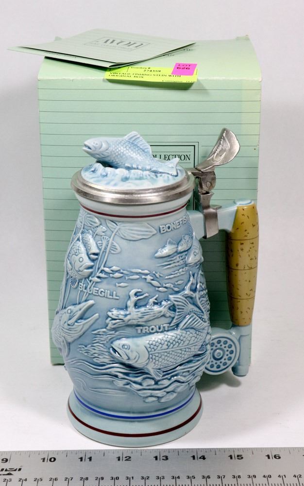 VINTAGE FISHING STEIN WITH ORIGINAL BOX