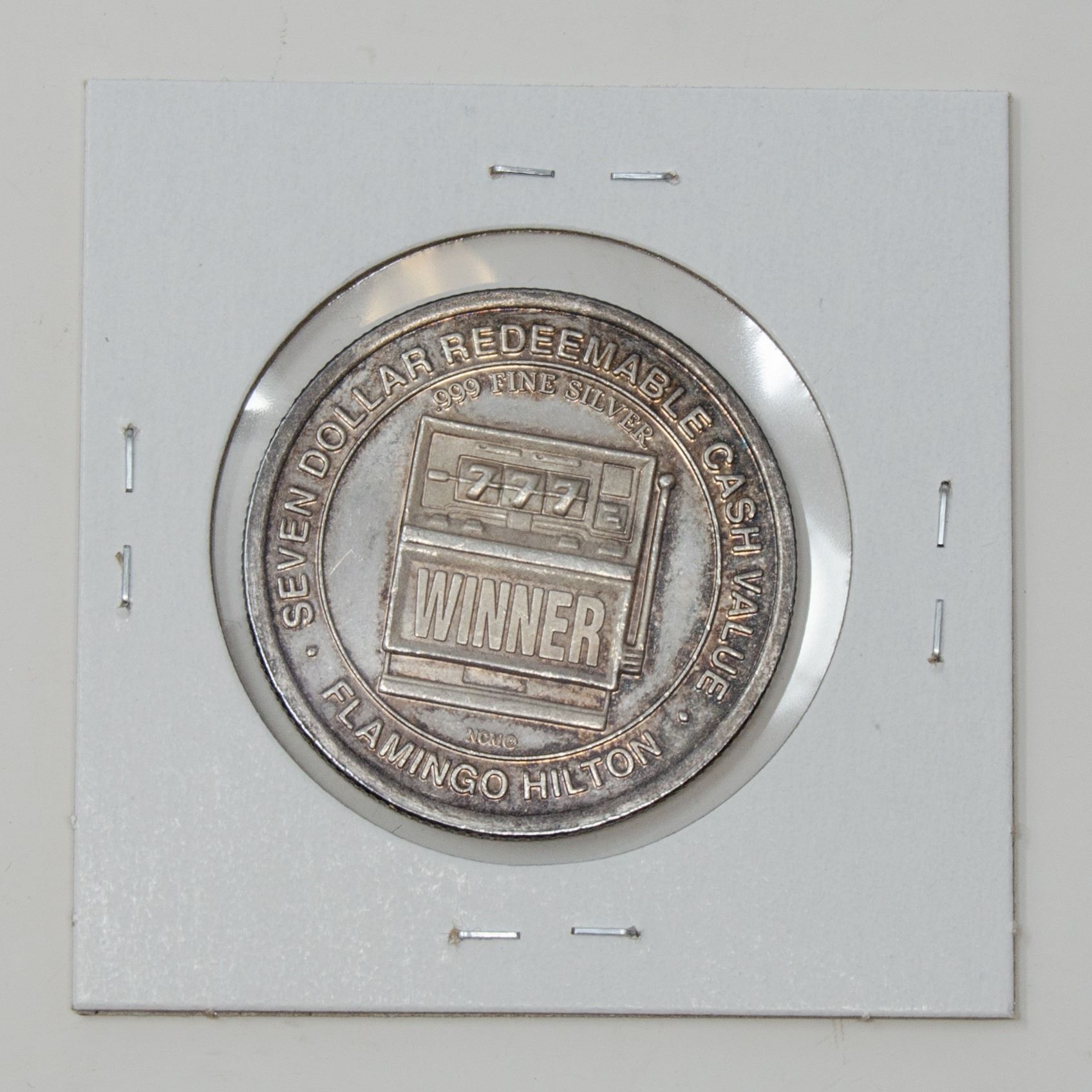 VINTAGE FLAMINGO HILTON FINE SILVER CASINO TOKEN