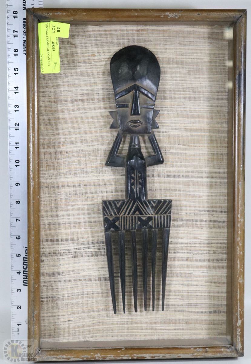 VINTAGE FRAMED AFRICAN ART 18"X11"