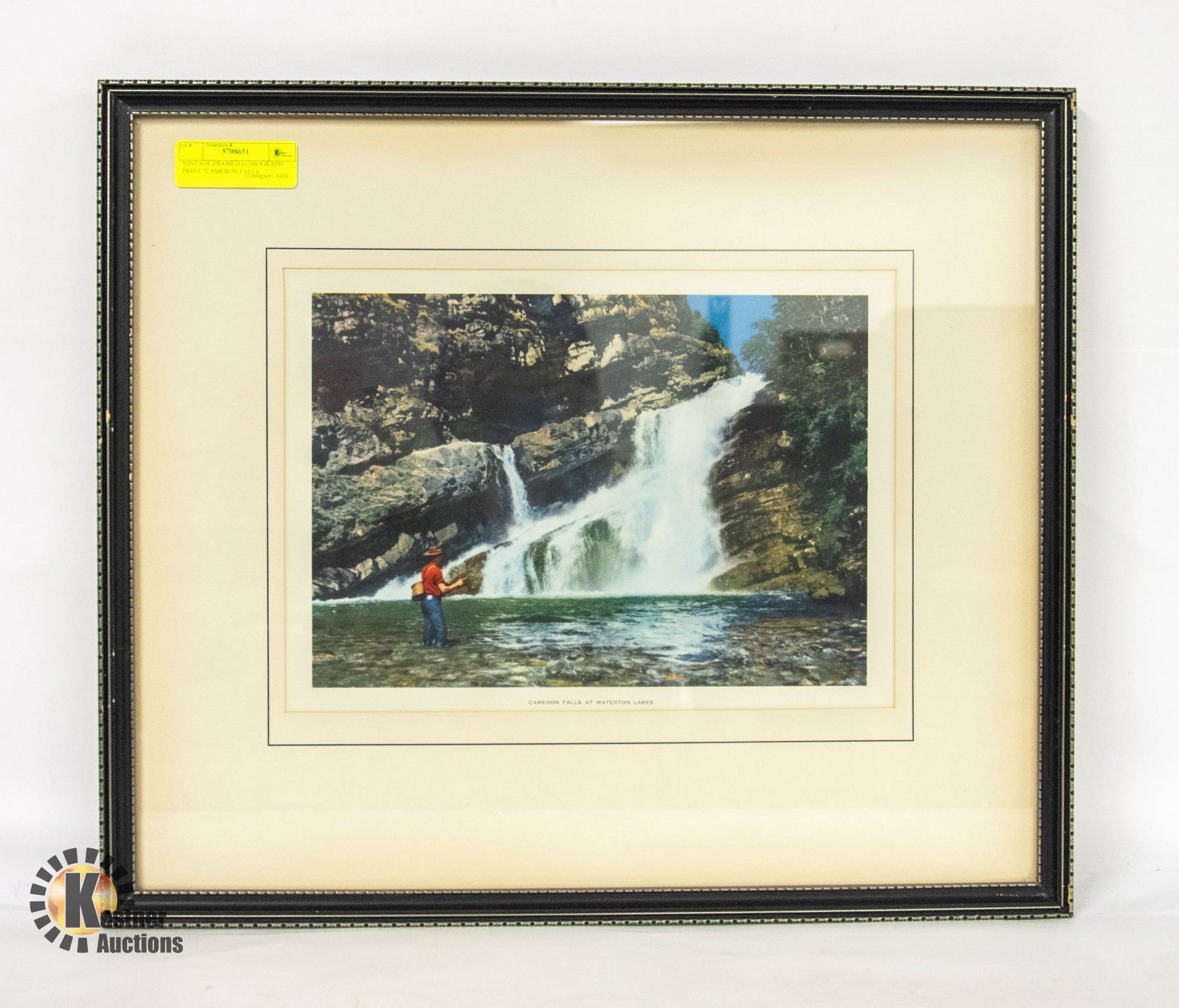VINTAGE FRAMED LITHOGRAPH PRINT "CAMERON FALLS