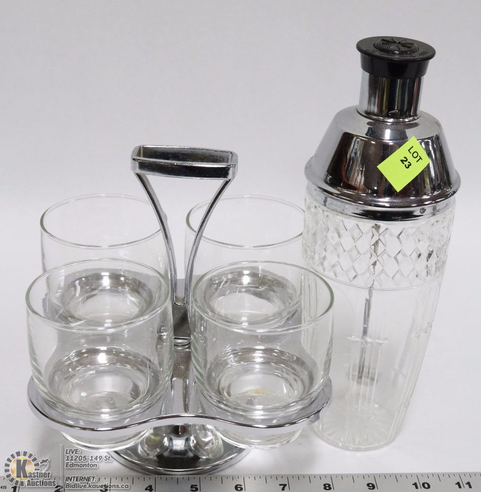 VINTAGE GLASS DRINK MIXER W/4 CUPS