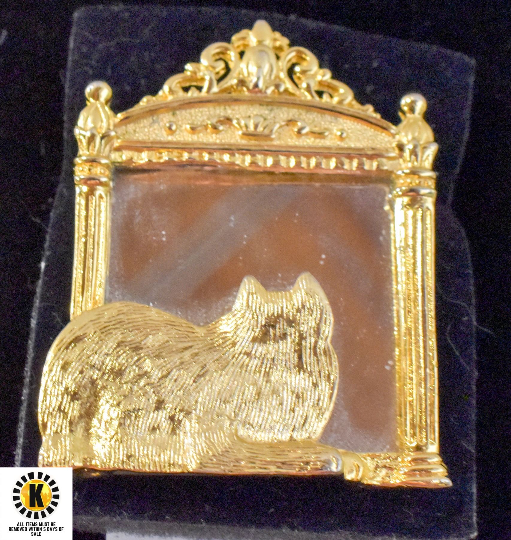 VINTAGE GOLD TONE KITTY IN THE MIRROR BROOCH