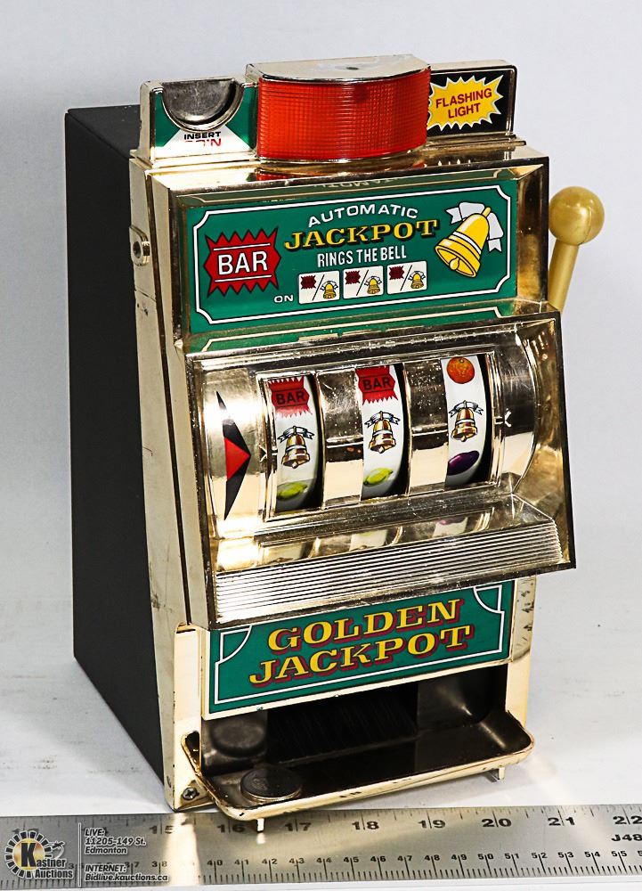 VINTAGE GOLDEN JACKPOT SLOT MACHINE PIGGY BANK