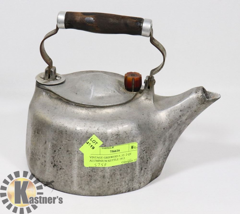 VINTAGE GRISWOID #532- 2 QT ALUMINIUM KETTLE 1913