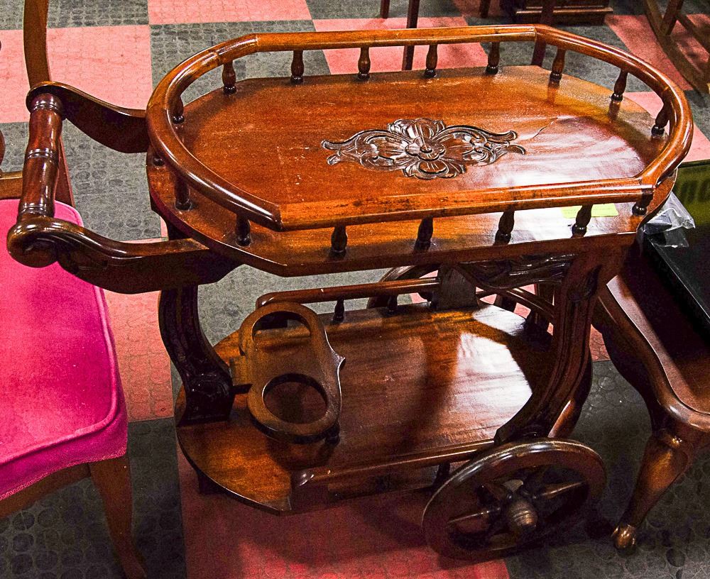 VINTAGE HAND CARVED TEACART 32 X 17 X 29