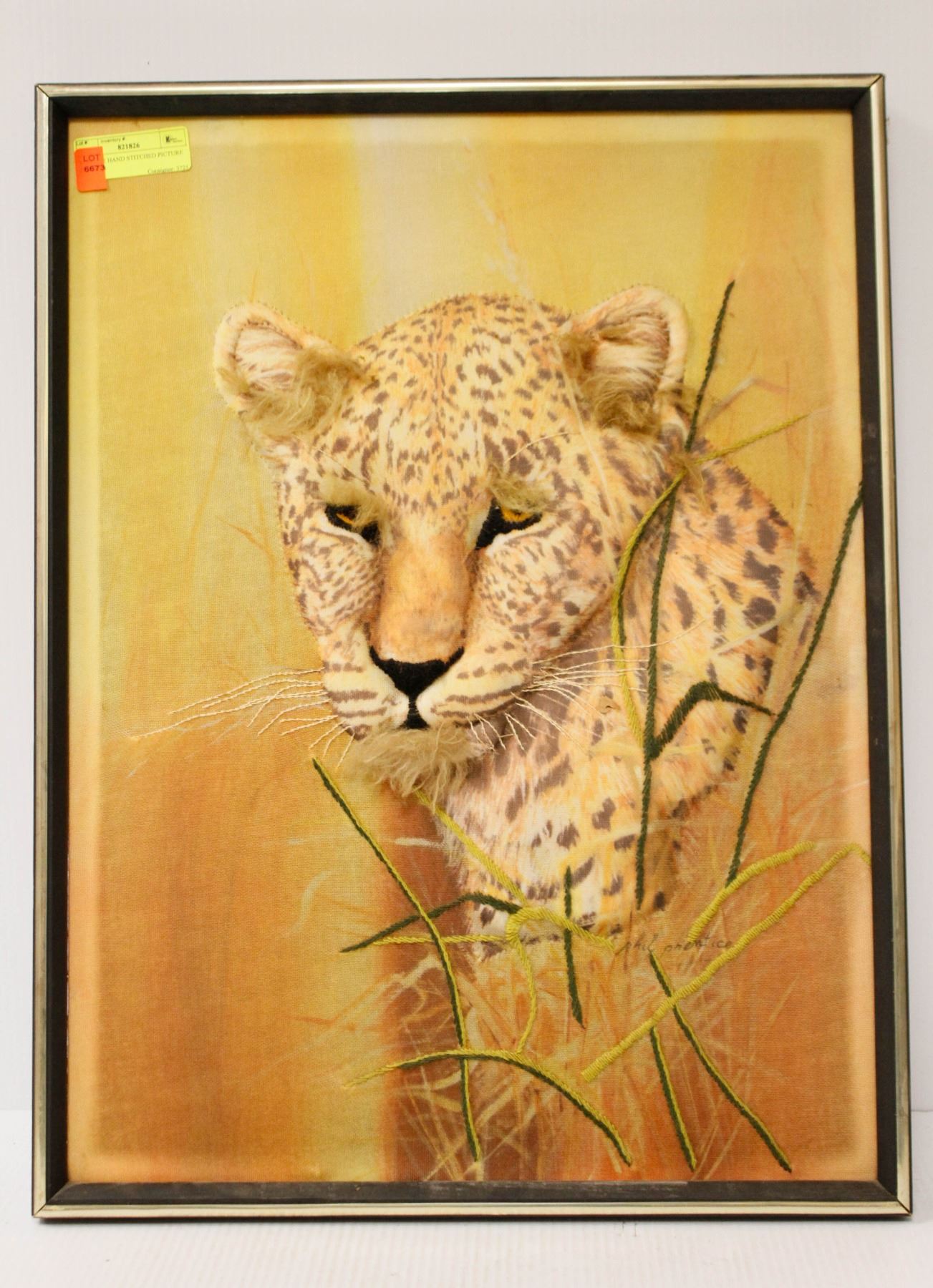 VINTAGE HAND STITCHED PICTURE OF TIGER. 19 X 25