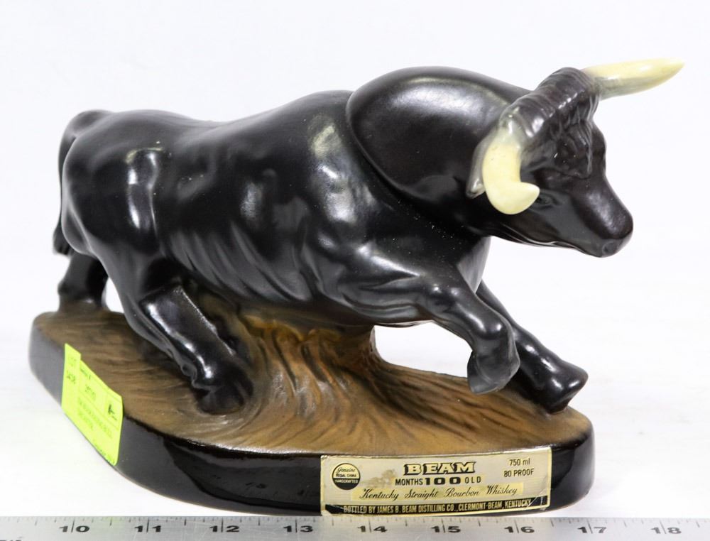 VINTAGE JIM BEAM RAGING BULL BOURBON DECANTER.