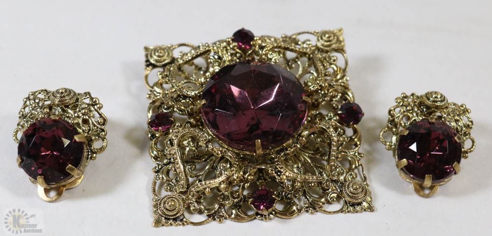 VINTAGE JOAN RIVERS MATCHING BROOCH/EARRINGS SET