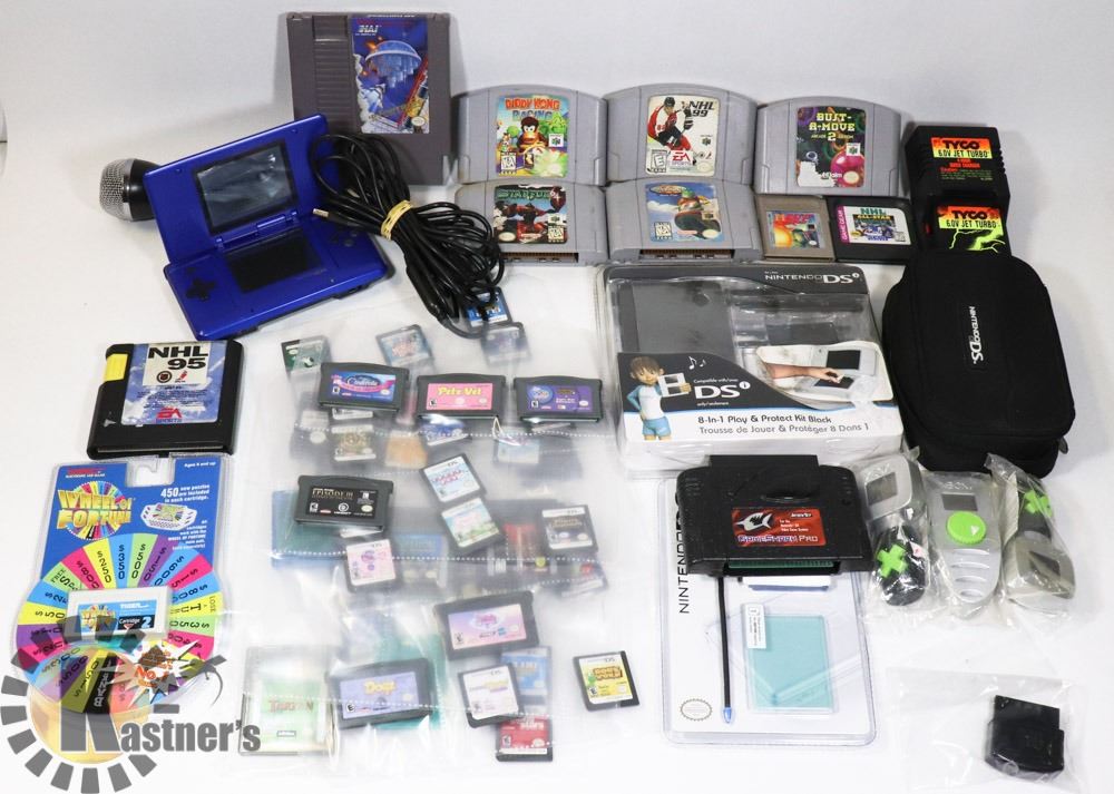 CARTRIDGES, GAME BOY, MEMORY CARDS, TYCO 6.0 TURBO 4 HOUR CHARGER, GUITAR HERO MEMORY CARD, 3 SEALED XBOX SHIP BLASTERS & MORE. COLLECTIBLES