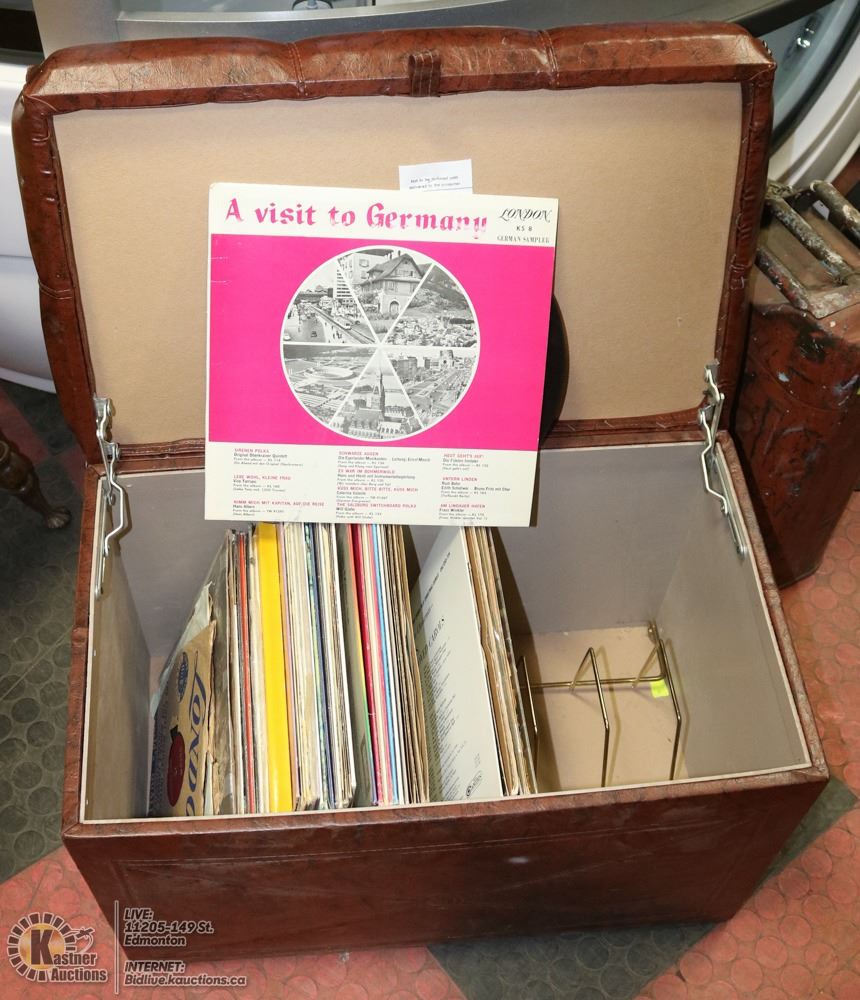 VINTAGE LEATHERETTE STORAGE STOOL WITH LPS