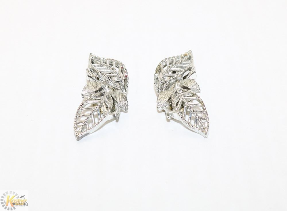 VINTAGE LISNER SILVER TONE FILIGREE LEAF EARRINGS