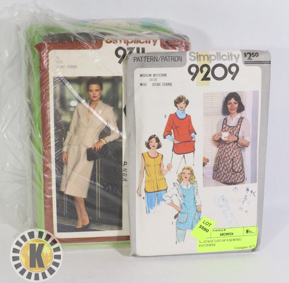 VINTAGE LOT OF 9 SEWING PATTERNS