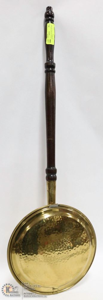 BRASS PAN AND LONG DARKWOOD HANDLE. DÉCOR ITEM