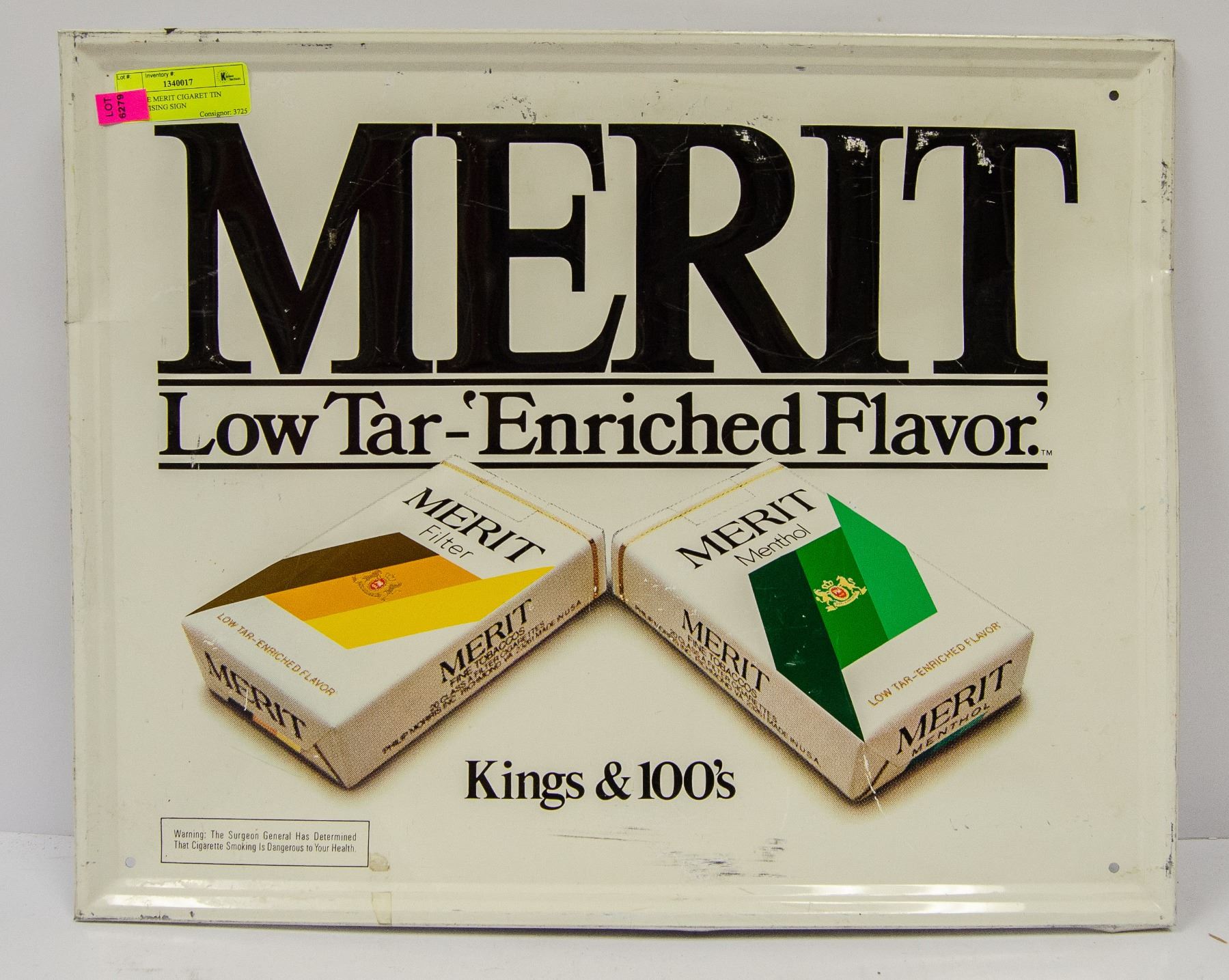 VINTAGE MERIT CIGARET TIN ADVERTISING SIGN
