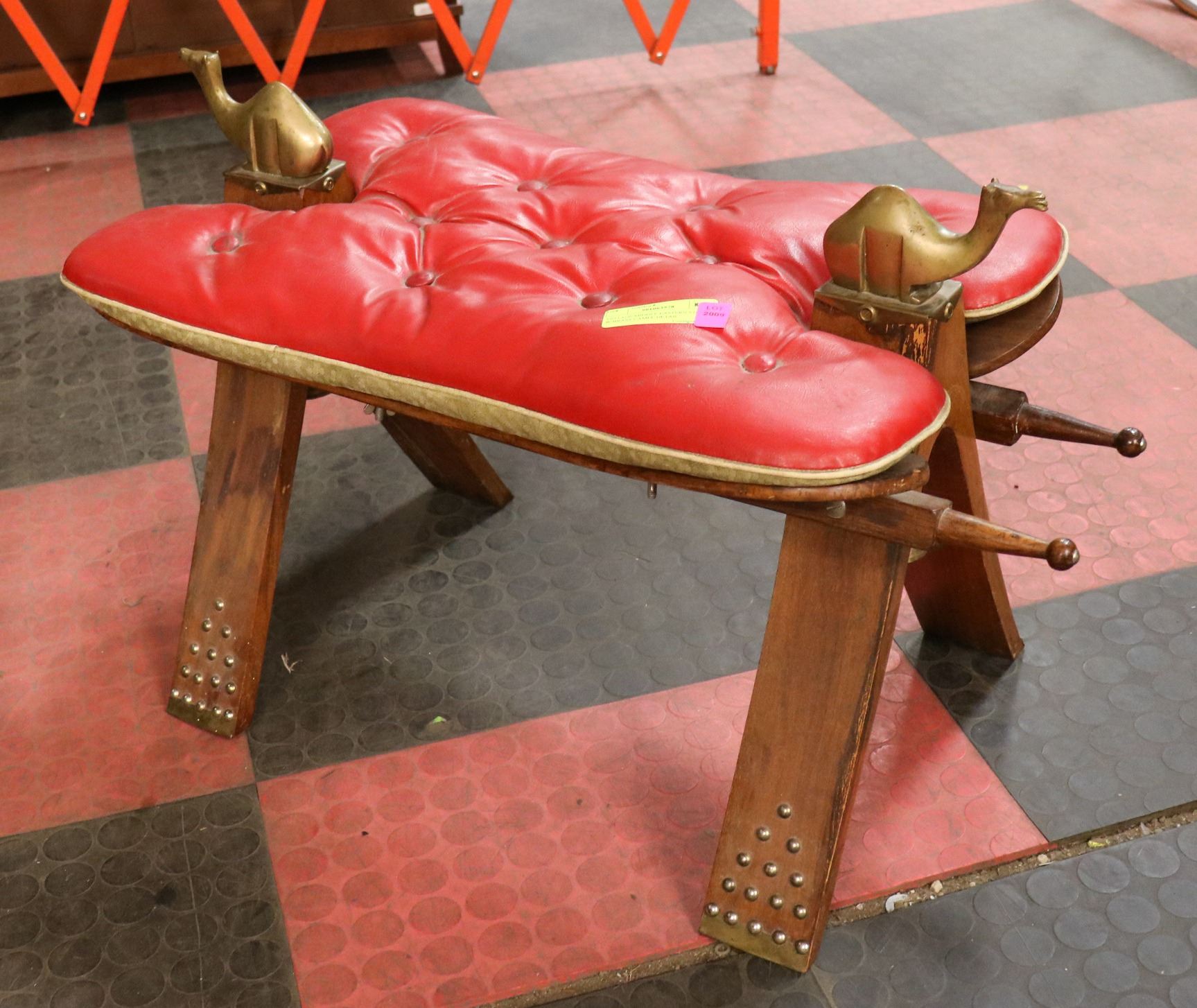 VINTAGE MIDDLE EASTERN STOOL W/BRASS CAMEL DETAIL