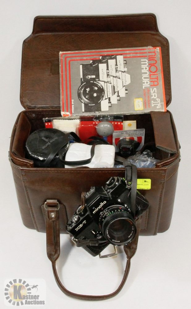 VINTAGE MINOLTA CAMERA, CASE AND MANUAL