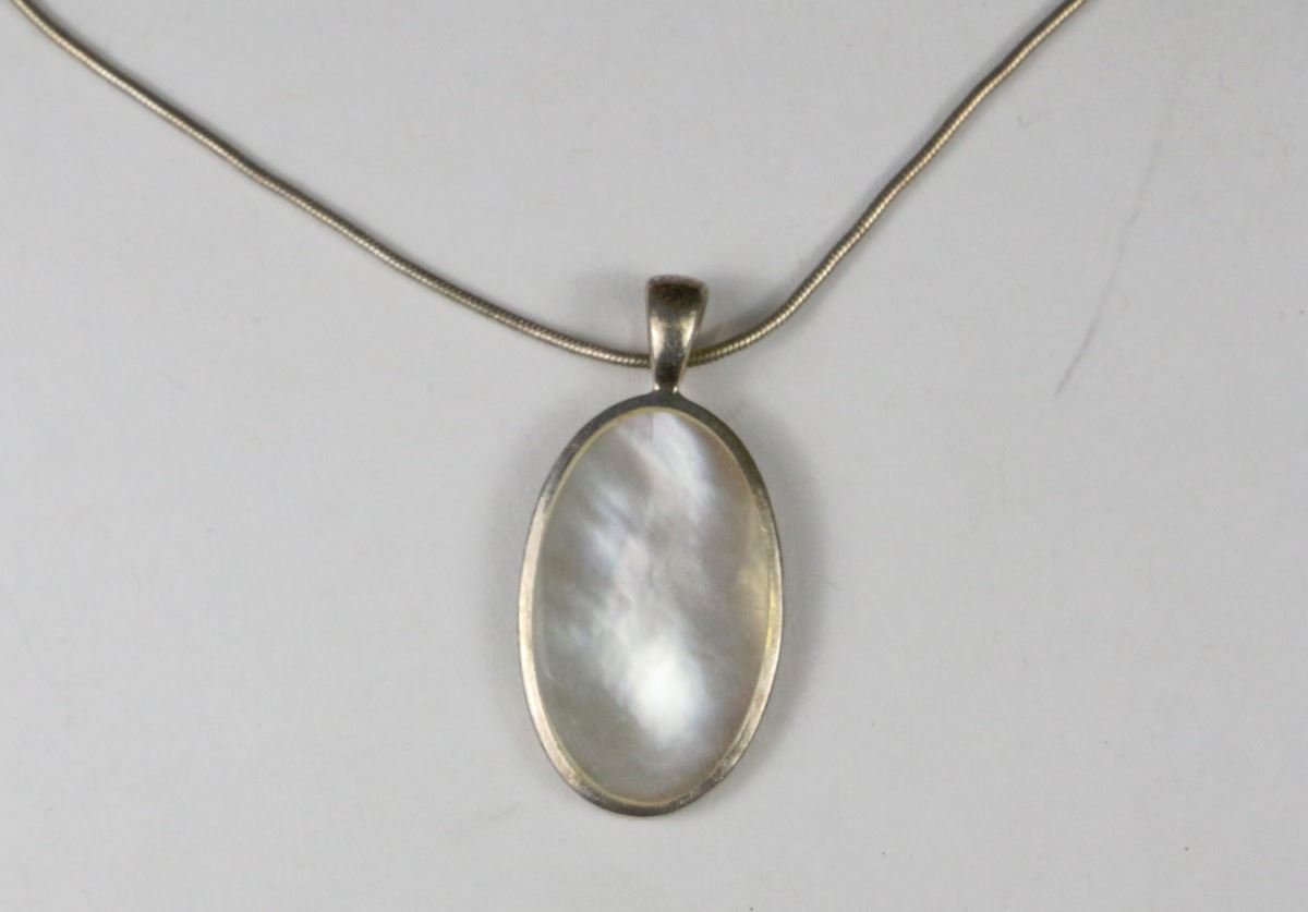 VINTAGE MOTHER OF PEARL .925 SILVER PENDANT &CHAIN