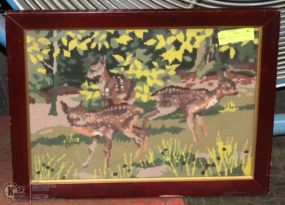 VINTAGE NEEDLEPOINT IN FRAME DEER 16" X 21"